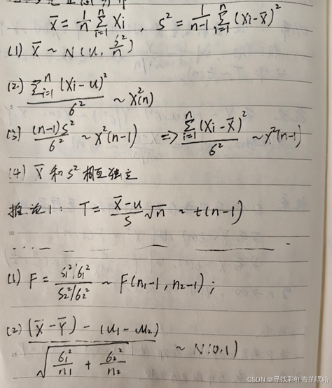 关于正态分布及其样本均值样本方差的两队推论;以及上升到多个正态分布的两个推论。