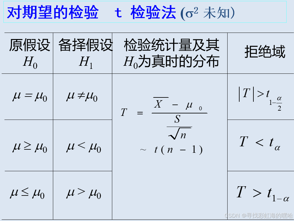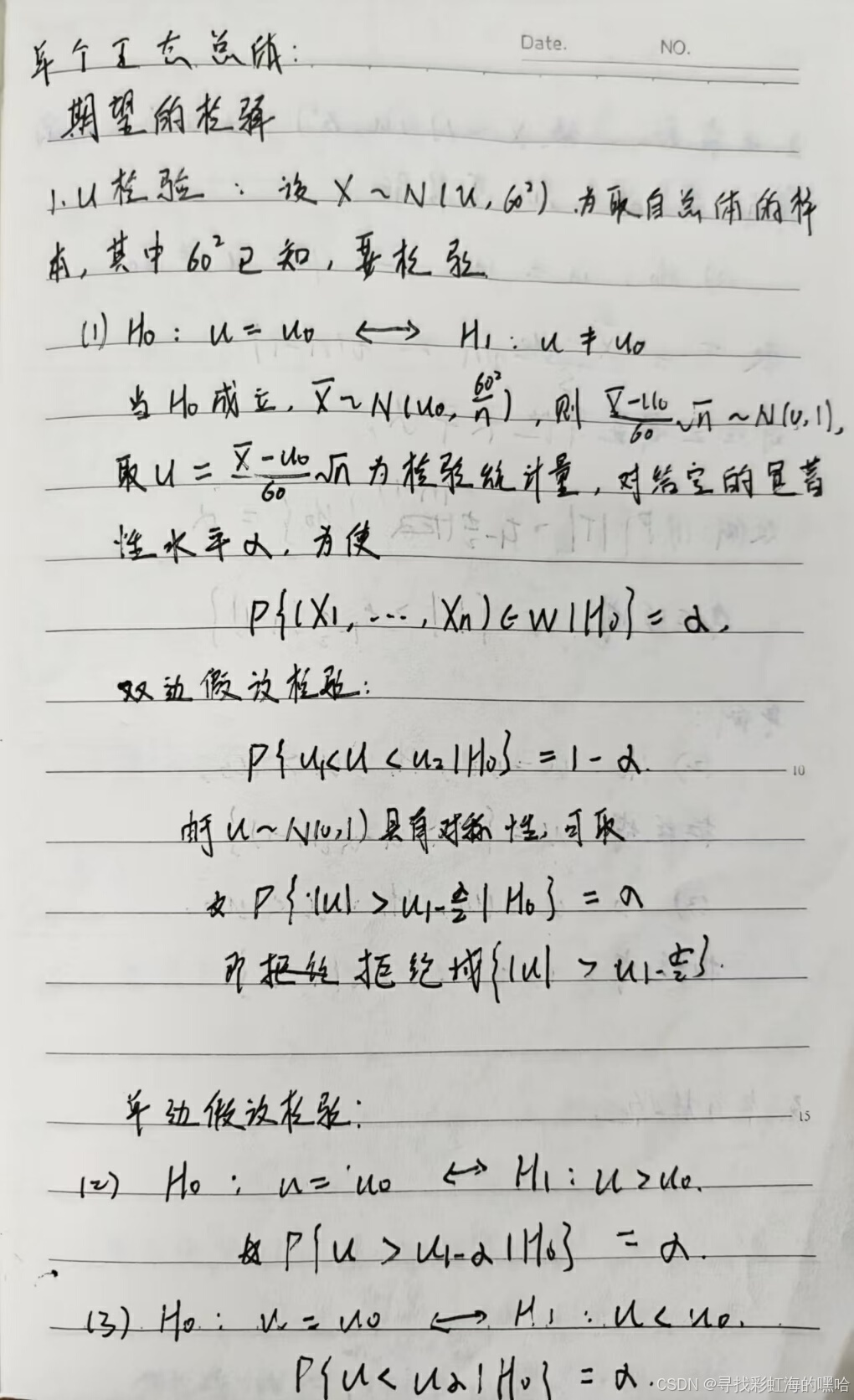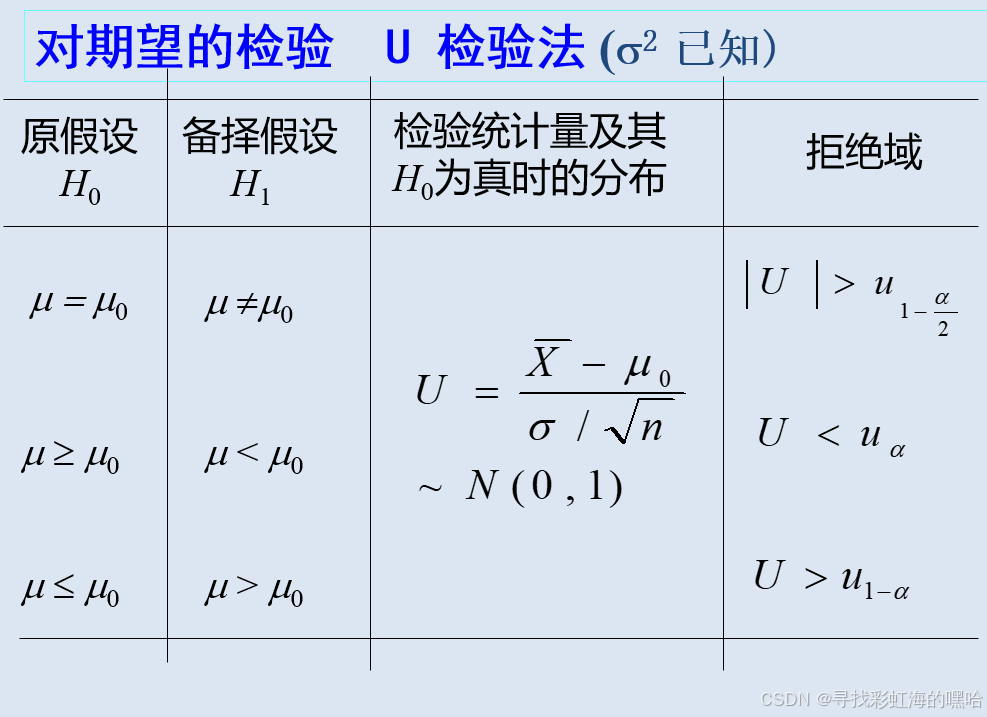 一、一些基本概念介绍 二、假设检验的一般步骤 三、假设检验与区间估计的联系 四、正态总体的参数假设检验 4.1单个正态总体 4.1.1对期望检验且方差已知 4.1.2对期望检验但方差未知 4.1.3对方差的检验且均值已知 4.1.4对方差的检验但均值未知 4.2两个正态总体 4..2.1对期望比较 4.2.2方差比较