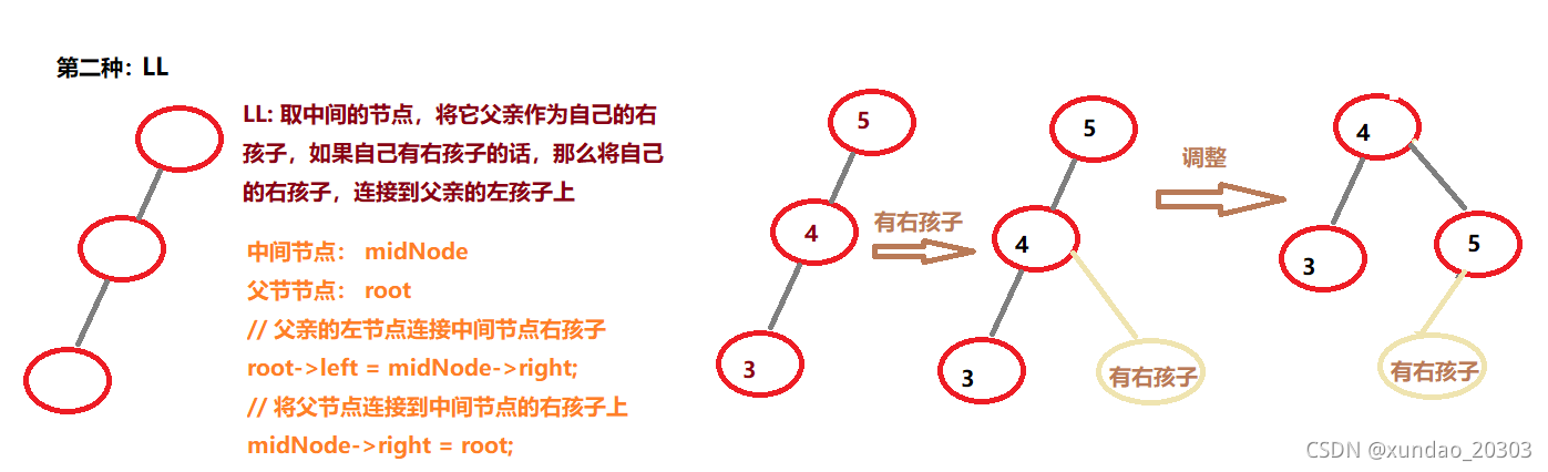 //6.1、 进行LL 调整 参数1:父节点 参数2:父节点地址