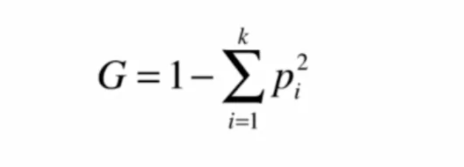 除了熵值,也可以用Gini系数,它的意义和作用和熵一样。Gini系数公式如下: