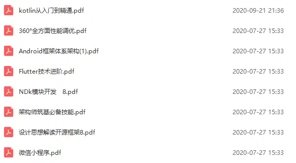 如果有需要进阶Android高级工程师系统学习资料的,我可以免费分享给大家,需要完整版的朋友,【点这里可以看到全部内容】。