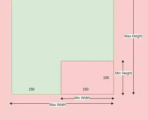在盒子协议中,父节点传递给其子节点的约束为 BoxConstraints。该约束规定了允许每个子节点的最大和最小宽度和高度。如下图,父节点传入 Min Width 为 150,Max Width 为 300 的 BoxConstraints: