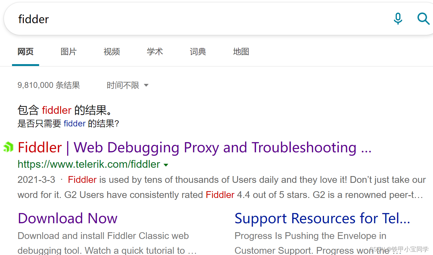 首先我们使用百度找到Fidder的官网。