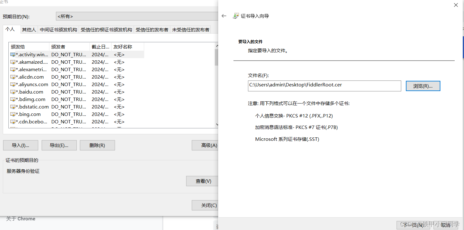 接下来把证书导入到浏览器中