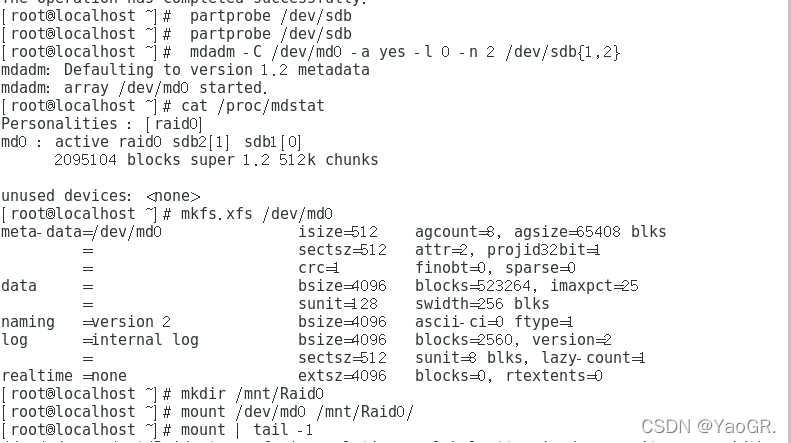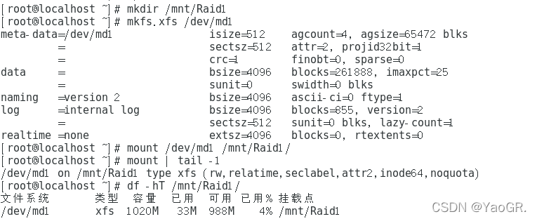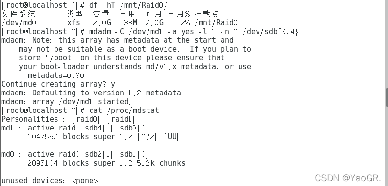 然后开始创建raid,这里我们创建一个raid名为md0