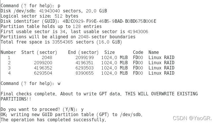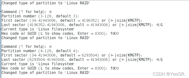 对分区进行管理,创建分区并修改分区类型,这里示范一个/dev/sdb。