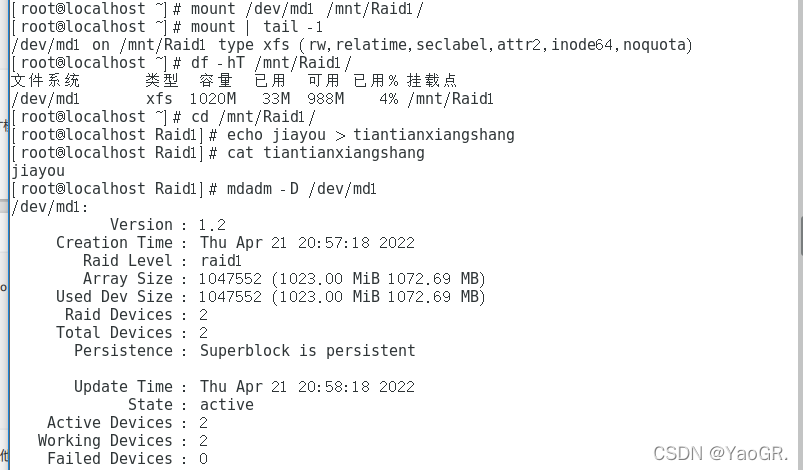 复制一个数据进去,然后模拟一块磁盘损坏,看一下还能不能访问