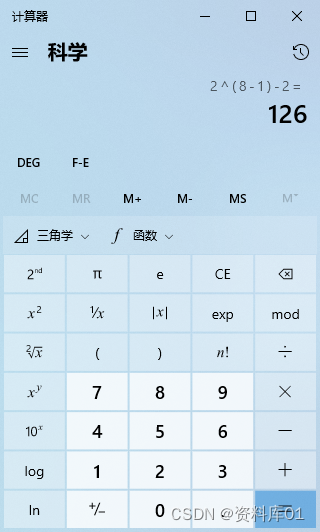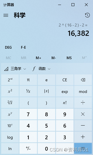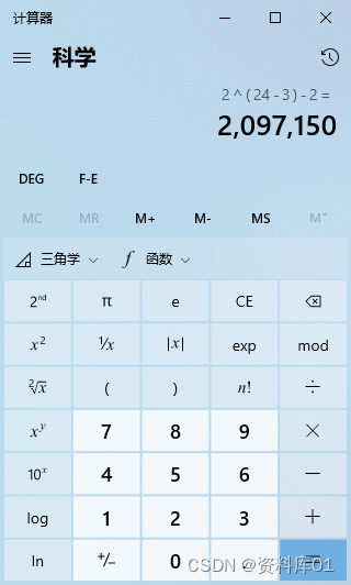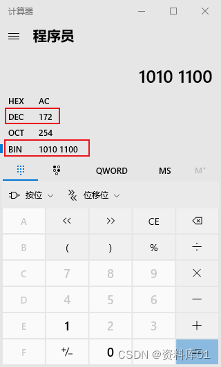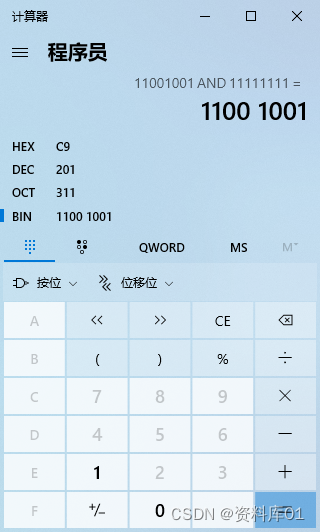 通过 Windows 系统自带的计算器,选择程序员,可实现二进制和十进制的快速转换。默认十进制(“ DEC ”)输入,单击“ BIN ”切换成二进制输入。同步显示十六进制、十进制、八进制和二进制的数值。