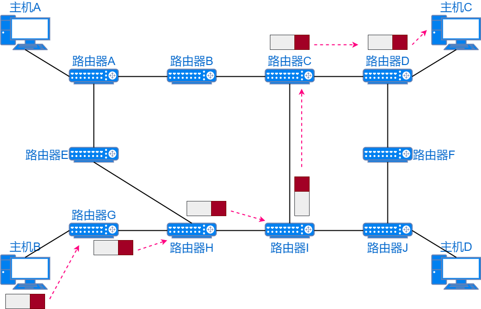 当主机 C 向主机 A 发送回复报文时,同主机 A 向主机 C 发送数据的步骤一致。