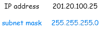 例如:201.20.100.25 的子网掩码是 255.255.255.0 ,算出它的网段地址。