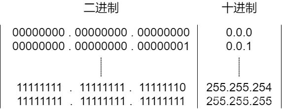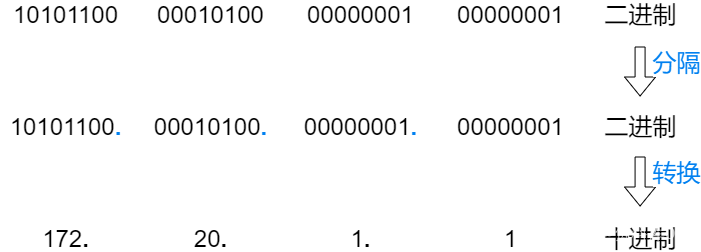 IP 地址由 32 位二进制数组成。为了方便记录,将 32 位的 IP 地址分为 4 组,每 8 位为一组,每组以“ . ”隔开,再将每组数转换为十进制数。