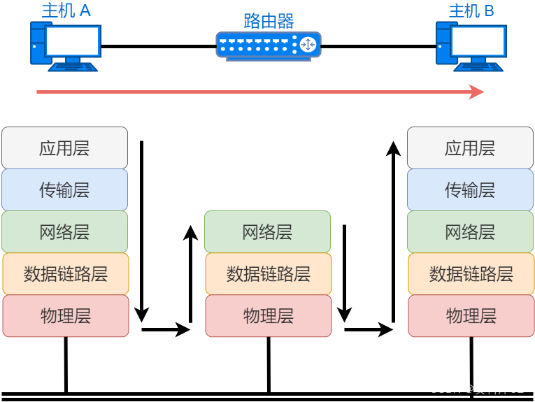 - 主机:配置有 IP 地址,不进行路由控制的设备。