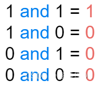 IP 地址和子网掩码的二进制数,逐位进行计算。只有当 IP 地址和掩码都是 1 时,运算结果为 1 。其余情况计算结果都为 0 。