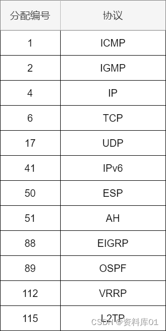 字段长度为 8 比特,表示 IP 上一层所使用的协议。常见的 IP 上层协议有 TCP 和 UDP 。