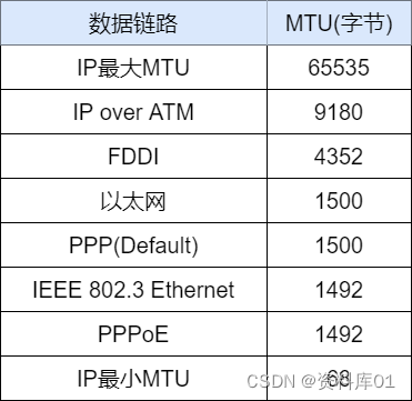 - 发送端主机根据收到的 MTU 值对数据包进行分片处理,再把 IP 数据包发送给相同的目的主机。如此重复,直到数据包被发送到目标主机为止没有再收到任何 ICMP ,就认为最后一次 ICMP 所通知的 MTU 即是一个合适的 MTU 值。MTU 值至少可以缓存约 10 分钟,在这 10 分钟内使用刚得到的 MTU ,过了 10 分钟后就重新做一次路径 MTU 发现。