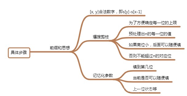 记忆化f[k][x][p]表示填到第k为,上一位是x,当前是否可以随便填,后面的方案数。
