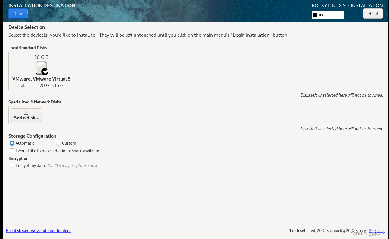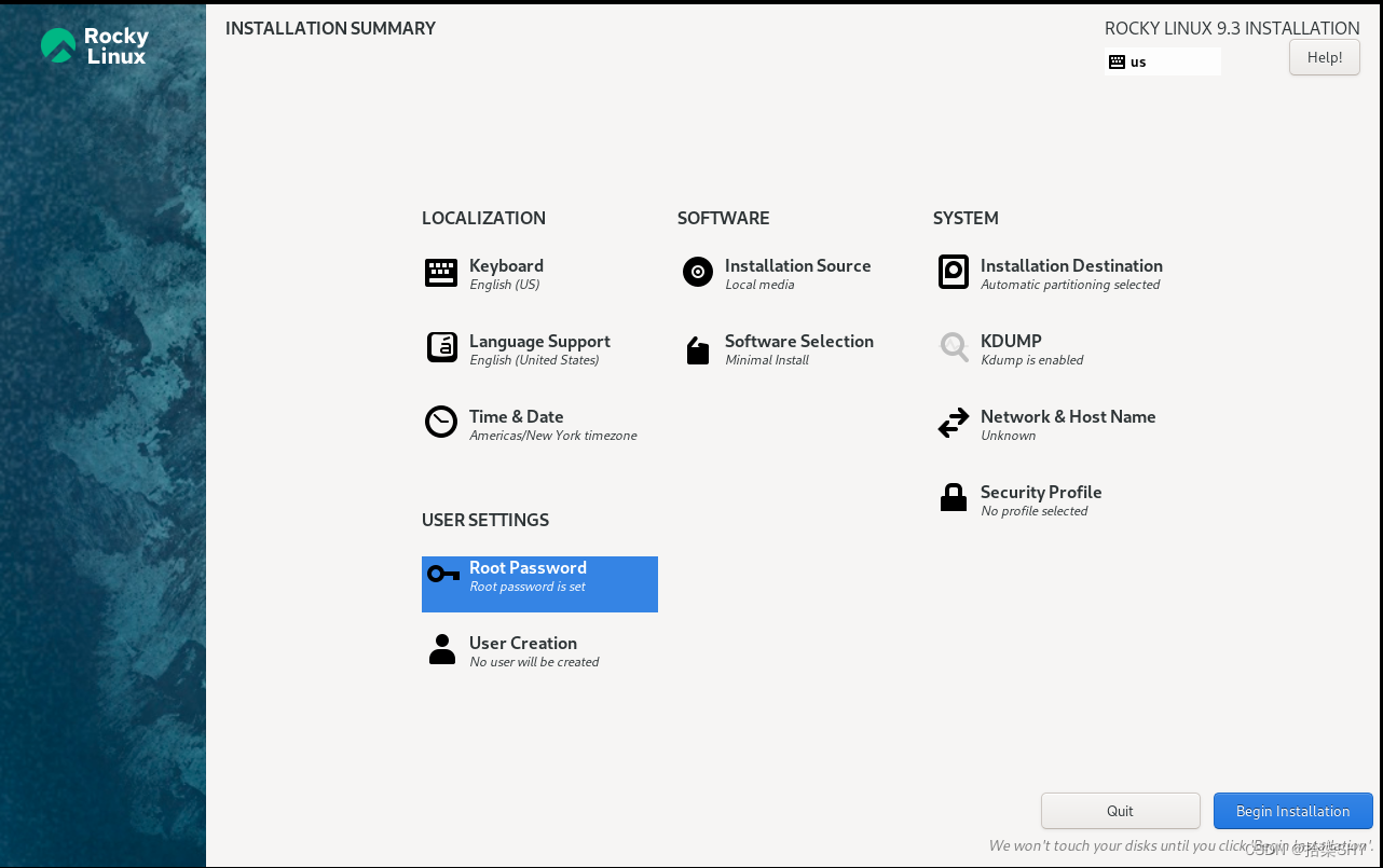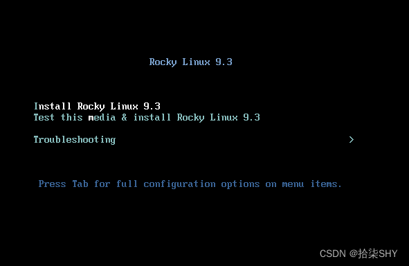 然后开启虚拟机→选择第一个(安装rocky)→等待