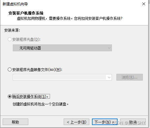 选择创建虚拟机→典型→下一步→点击稍后安装操作系统