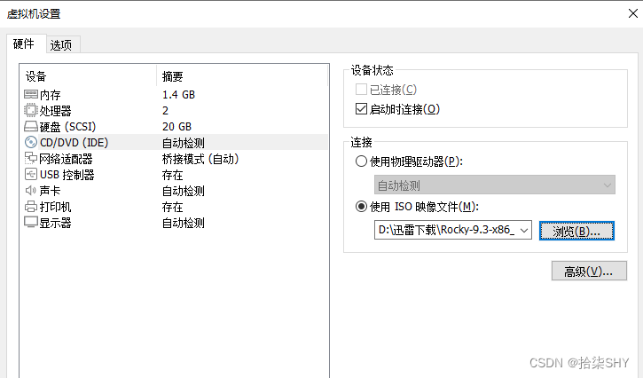 然后点击编辑虚拟机设置→CD/DVD→选择ISO镜像