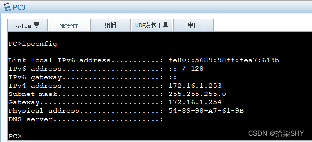 - PC2和PC3通过DHCP地址池方式获取IP地址