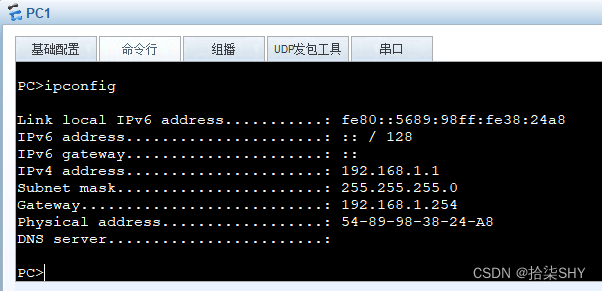 - PC1通过DHCP获取192.168.1.1地址