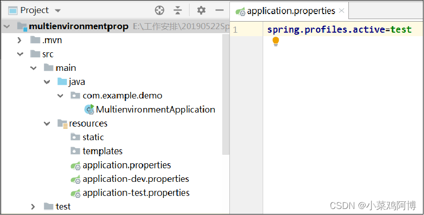例如:spring.profiles.active=test