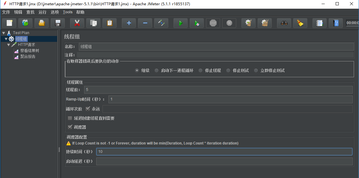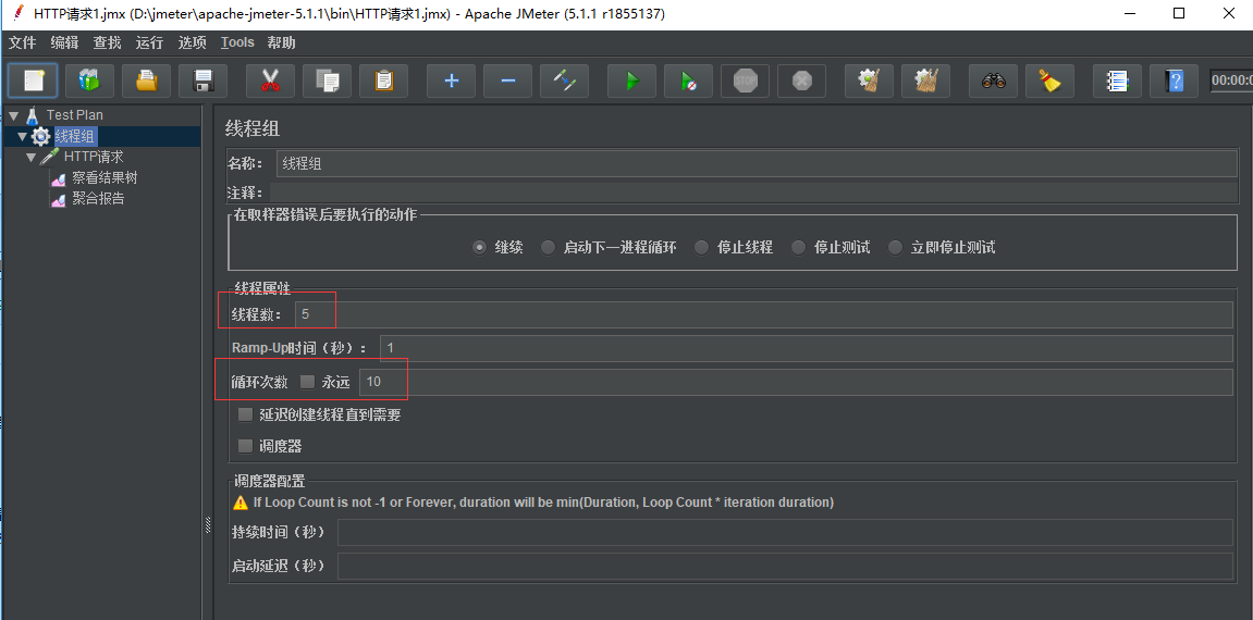使用jmeter 做压测的时候,希望对一个接口持续压测 10 分钟或者半小时,可以使用调度器设置持续压测时间。