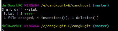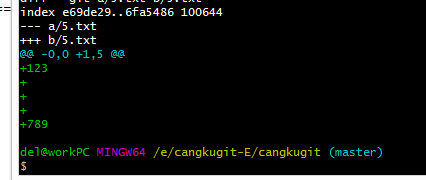 5.txt文件已经被提交了,现在我再更改工作区的5.txt文件,然后再执行git diff命令: