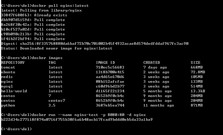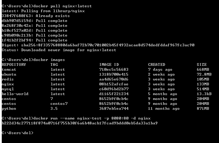 $ docker run --name nginx-test -p 8080:80 -d nginx