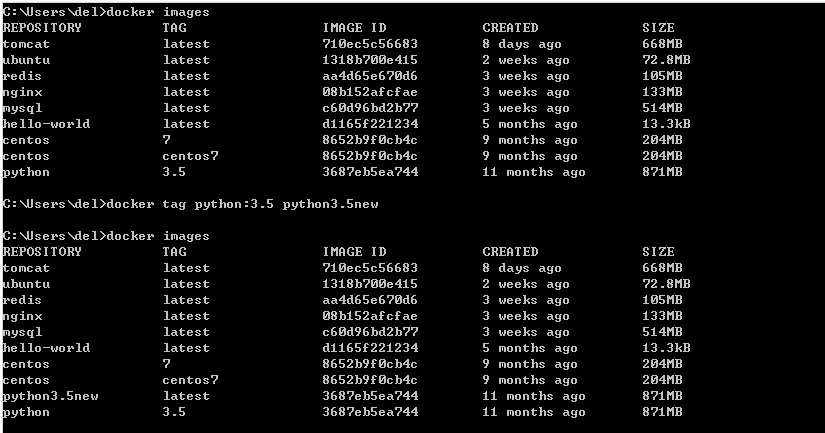 docker tag [OPTIONS] IMAGE[:TAG] [REGISTRYHOST/][USERNAME/]NAME[:TAG]