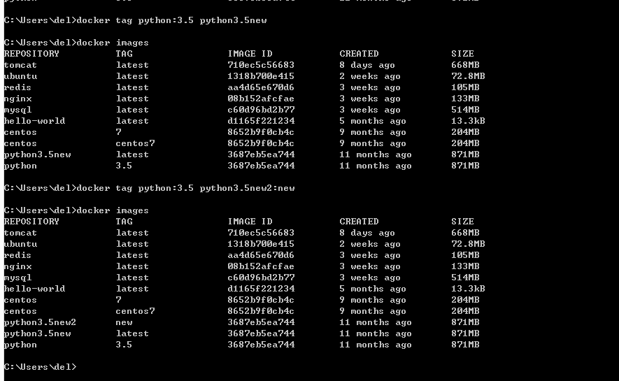 REPOSITORY TAG IMAGE ID CREATED SIZE
