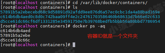 容器ID 就是文件夹名称,可通过 docker ps -aq 来查看,不过这是缩写,对照起来看就行