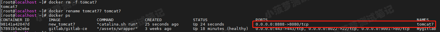 如果新容器想用回旧容器的名字,需要先删了旧容器,再改名