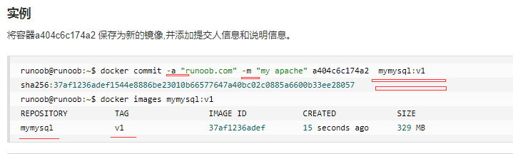 docker commit [OPTIONS] CONTAINER [REPOSITORY[:TAG]]