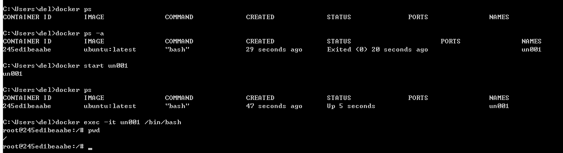 生成一个容器,并且运行,然后退出。这个容器就不在运行。