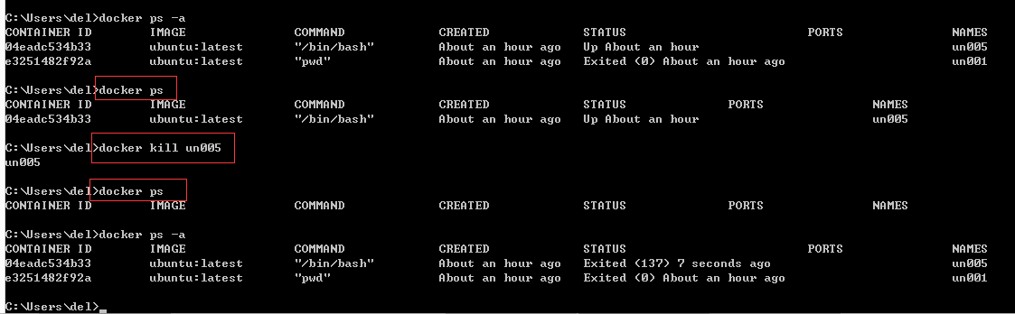 - docker kill子命令可杀死一个或多个容器