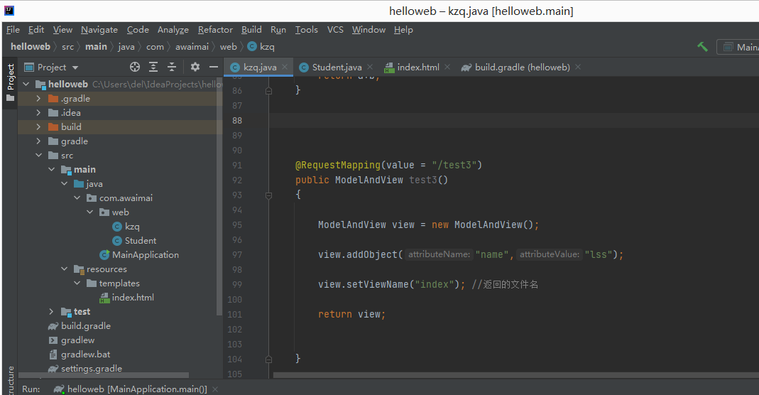 本文介绍了如何在Spring框架下,使用@Validated注解的kzq控制器处理/test3请求,展示了一个简单的模型视图(ModelAndView)操作,包括设置视图名和动态数据传递。HTML页面展示了如何接收并显示来自Controller的数据。