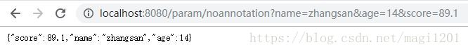 URL: http://localhost:8080/param/noannotation?name=zhangsan&age=14&score=89.1