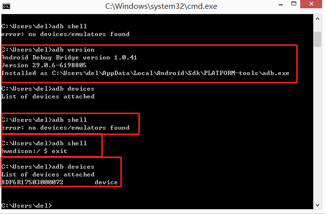2、查看安装路径; C:\Users\del\AppData\Local\Android\Sdk\platform-tools