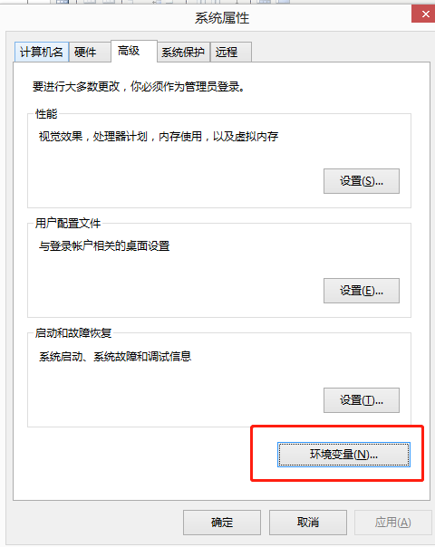 a、在“电脑”–>“属性”–>“高级系统设置”–>“环境变量”;