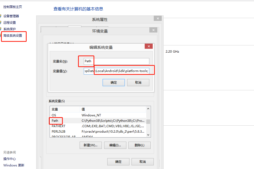 b、在变量里找到PATH,新建(添加)你的adb的路径,我的是“C:\Users\del\AppData\Local\Android\Sdk\platform-tools”