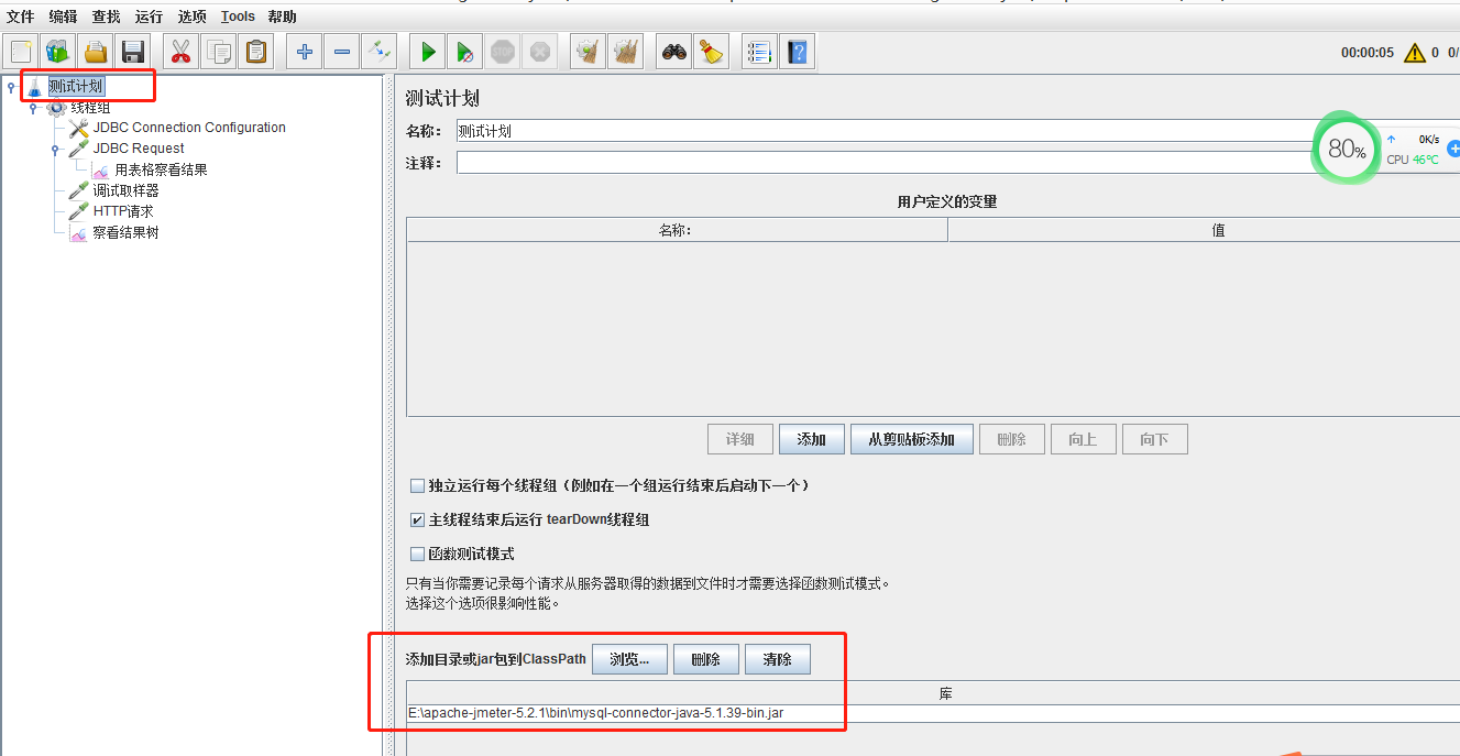 三、线程组添加JDBC Request(添加->Sampler-> JDBC Request) 用于写sql来操作Mysql;