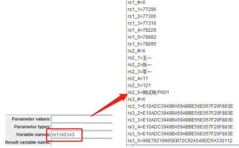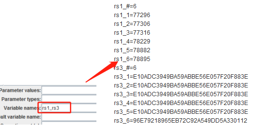 在jmeter中是这样规定的,当Variable Names设置值为rs1,rs2.rs3,则rs1,rs2.rs3分别代表了查询结果集中的第一列,第二列,第三列;
