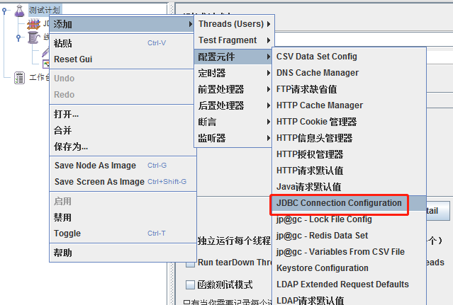 二、打开jmeter,右键添加->配置文件->JDBC Connection Configuration