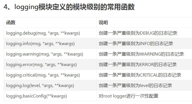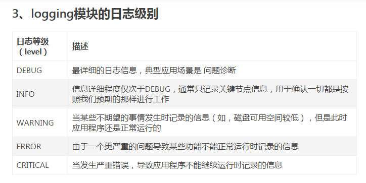 级别排序:CRITICAL > ERROR > WARNING > INFO > DEBUG