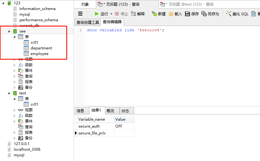 mysqldump -u root -p123 -d see cr01 department > C:\Users\del\Desktop\jg001.sql