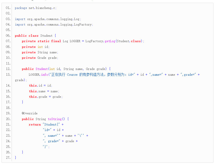 4. 在 net.biancheng.c 包下,创建一个名为 Student 的类,代码如下。
