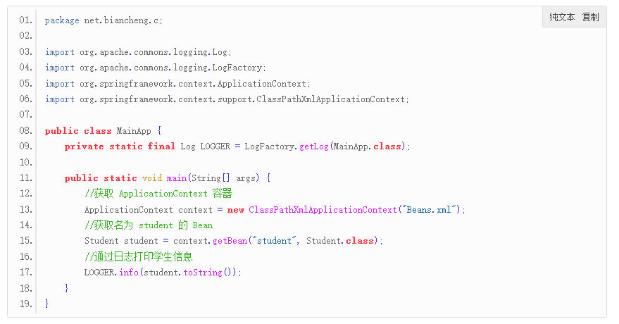 6. 在 net.biancheng.c 包下,创建一个名为 MainApp 的类,代码如下。