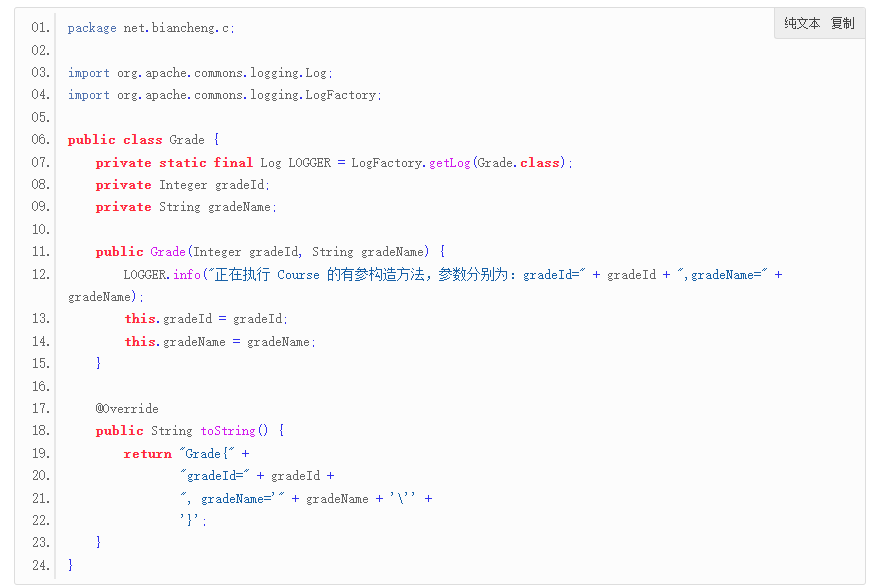 3. 在 net.biancheng.c 包下,创建一个名为 Grade 的类,代码如下。