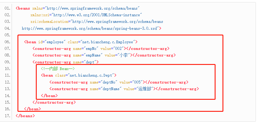 构造函数方式注入内部 Bean